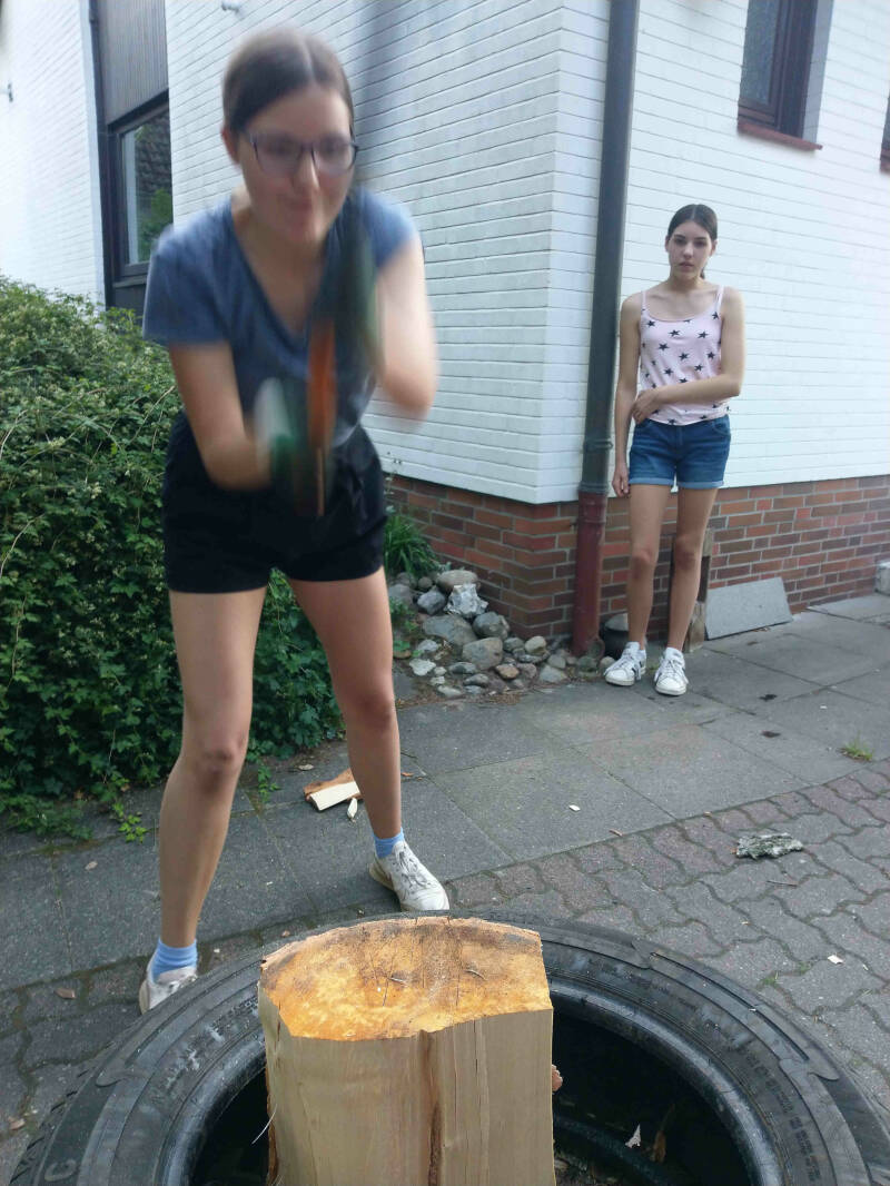 Großes Lob für die Treffsicherheit und der Umsetzung des Unterrichtsstoffes in die Praxis. Ein gutes Auge und junger Mut sind tragende Teile des Axtens