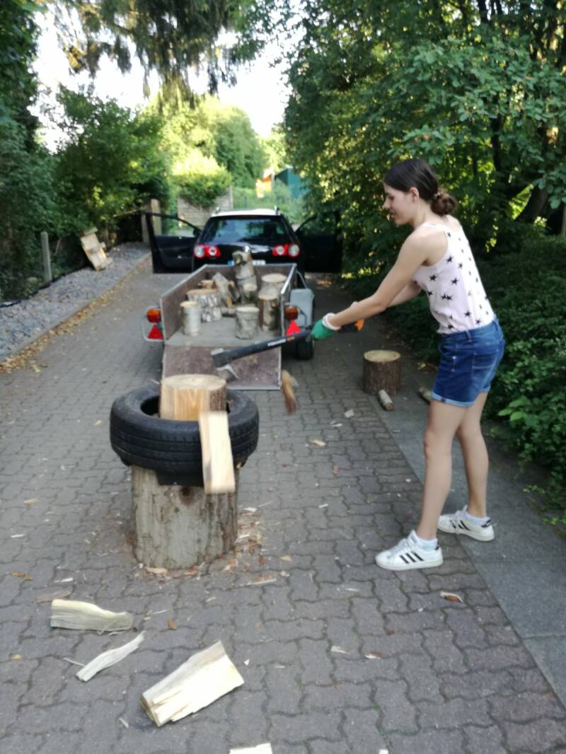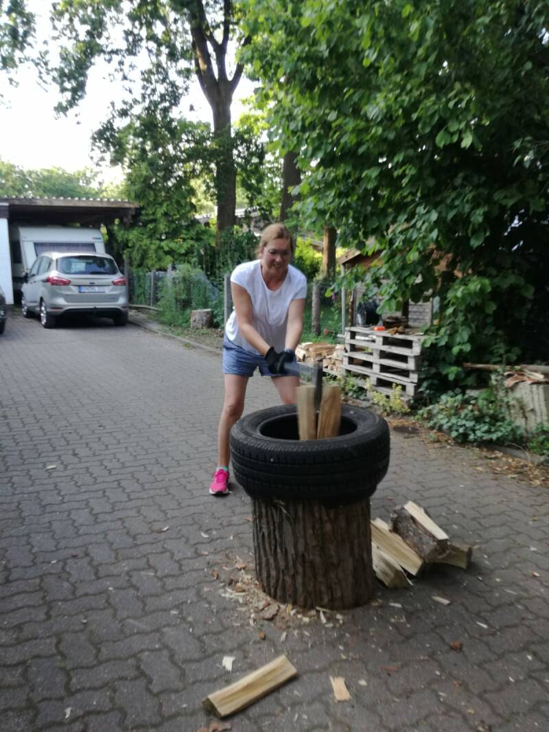Wenn das nicht passt wie Axt auf Rundling? Hausbesuch in Buchholz. Nicht in Neustadt oder Straßburg, nein in Buchholz. Da wo es Holz der Buchen gibt. Trotzdem bringen wir unser Holz mit. Birke und Kiefer. Und einen Spaltklotz, Äxte und Theorie.